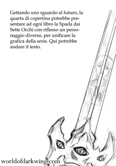La quarta di copertina è stata una sfida interessante, desideravamo trovare un modo per mantenere lo spirito della cover originale inserendo Lyse, ma allo stesso tempo è emersa l’esigenza di dare al libro una veste grafica unificata che potesse essere ripresa anche nei prossimi volumi. Alla fine ci è venuta l’idea di riutilizzare parte del secondo bozzetto e mettere in quarta la Spada, lasciandola fissa anche sui prossimi libri della serie, cambiando però di volta in volta il personaggio riflesso sulla lama.