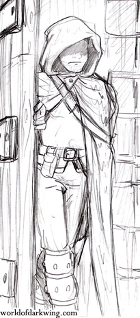 Peter indossa un corpetto e degli stivali in cuoio borchiato su una cotta di maglia; non sono magici, ma di ottima fattura, comodi e leggeri.
