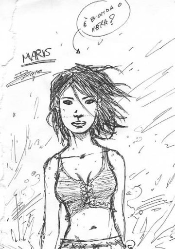 Ecco qui un’immagine molto vecchia con il primissimo studio di Maris, realizzato da un Nicolò Assirelli ancora quindicenne. Come vedete i suoi tratti somatici da straniera erano più accentuati, elemento che abbiamo un po’ mitigato nel suo design finale. Però in effetti non si è discostata troppo dalle sue origini!