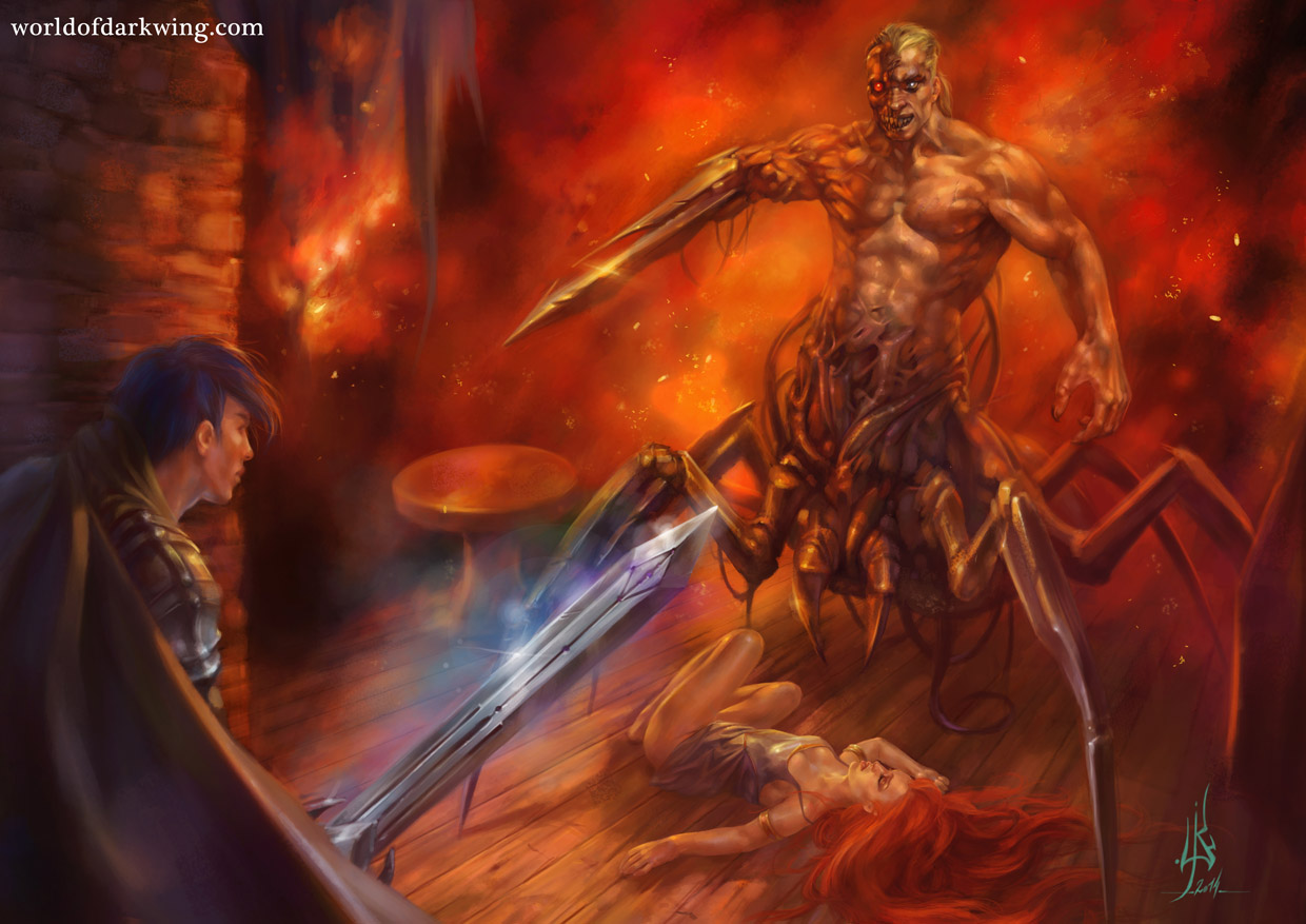Ho sempre avuto sentimenti contrastanti riguardo a Lerryt. E’ il cattivo su cui si regge buona parte del primo libro della serie, eppure si tratta di un personaggio che non ha mai riscosso grandi simpatie da parte dei lettori, probabilmente perché anch’io non l’ho mai amato troppo… del resto, è difficile provare simpatia per un pervertito violento, forse è proprio per questo che sentivo di non averlo sfruttato a fondo nell’edizione originale de La Spada dai Sette Occhi. Quando sono passato all’edizione Redux ho cercato di offrirgli maggior rilievo, collegandolo meglio a Peter e dandogli un ruolo più importante nel dipanare la sottotrama dei cyborg; ne ho approfittato inoltre per enfatizzare la sua natura di intelligenza artificiale difettosa che cerca di elaborare dei sentimenti che non è capace di gestire. Ritengo ne sia uscito fuori un personaggio più inquietante e credibile rispetto all’edizione Ute, anche se non si è mai elevato al livello degli altri villains, forse perché alcuni lo hanno percepito come un elemento estraneo nell’ambientazione fantasy del romanzo, forse per via della sua fine prematura. Tuttavia non escludo la possibilità di recuperarlo per una comparsata futura, magari in un DLC, e di certo non abbiamo visto la sua fine perché ci sono sempre le origini dei cyborg da svelare, dunque è sicuro che in un modo o nell’altro rispunterà fuori. Hang in there, Lerryt.