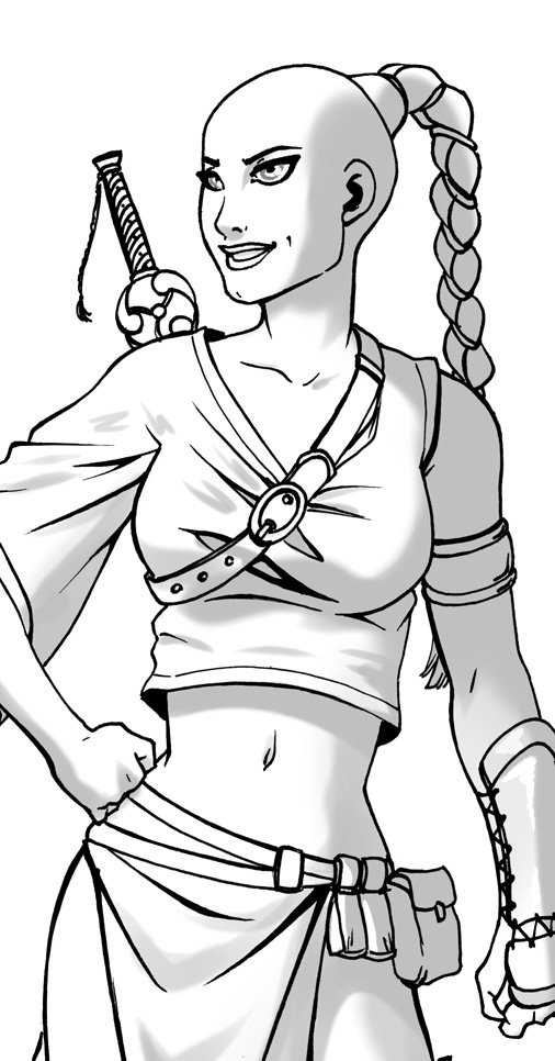 E’ nata nel popolo barbaro degli avalanci (qui troverete un approfondimento su questa razza) ed è stata catturata dagli schiavisti da adolescente, poi liberata dai Solar, presso i quali ha studiato con profitto le arti mediche.